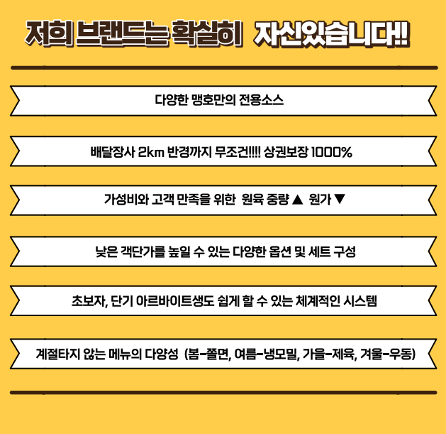2. 식자재의 통일성으로 점주님의 식재료비를!!