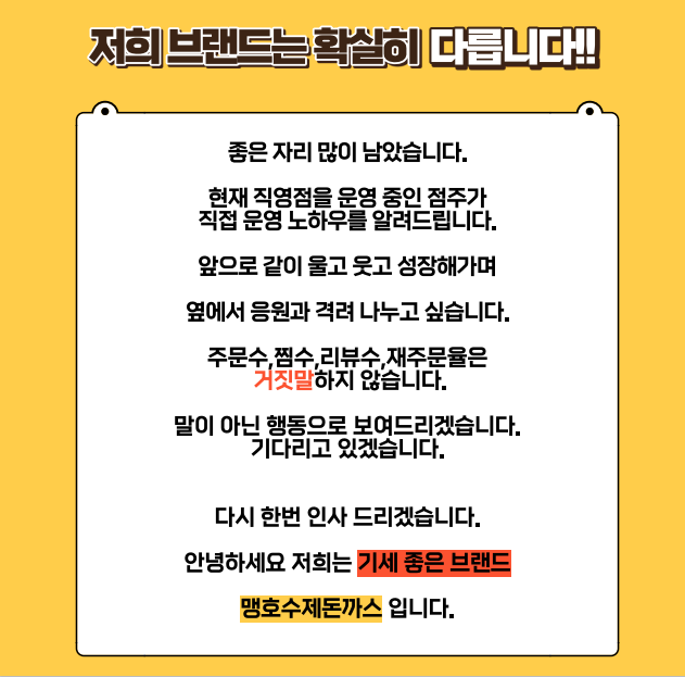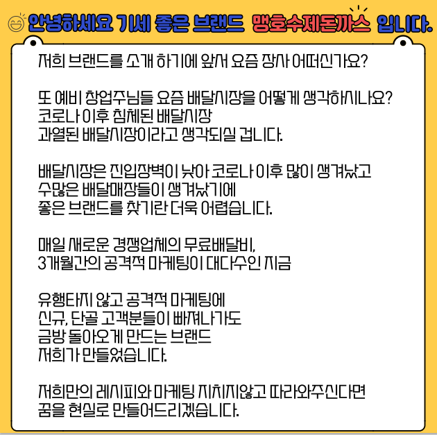 저희는 기세 좋은 브랜드 맹호수제돈까스입니다.